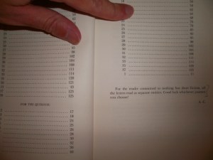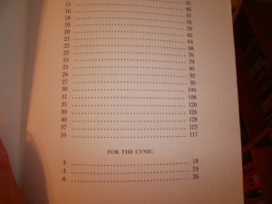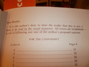 This is Castillo’s first novel, and wow have I missed out waiting this long to acquire and read it! I began reading the book this afternoon as soon as I unwrapped it from its shipping envelope (as C.S. Lewis writes in Surprised by Joy, there is really nothing like the happiness of receiving a package in the mail that one knows has a book inside), and not only is the writing up to Castillo’s usual beautiful standard, but it has a postmodern form as well! There is a note at the beginning of the table of contents which instructs readers not to read the book chronologically, and then gives them several options for how to read it depending on their personality type, as seen in these photographs: