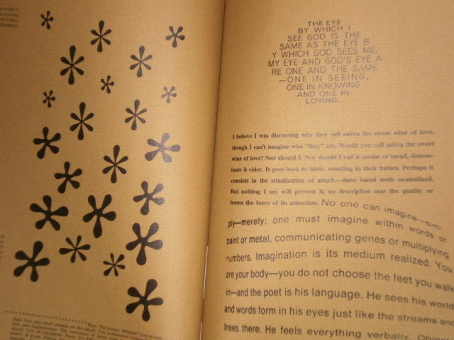 I recently bought and read the Dalkey Archive Press edition of Gass’s novella (the only one currently in print), but it does not replicated the colored pages of the original edition, so I was happy to find this copy for a reasonable price–$30.00–from one of amazon.com’s independent sellers.